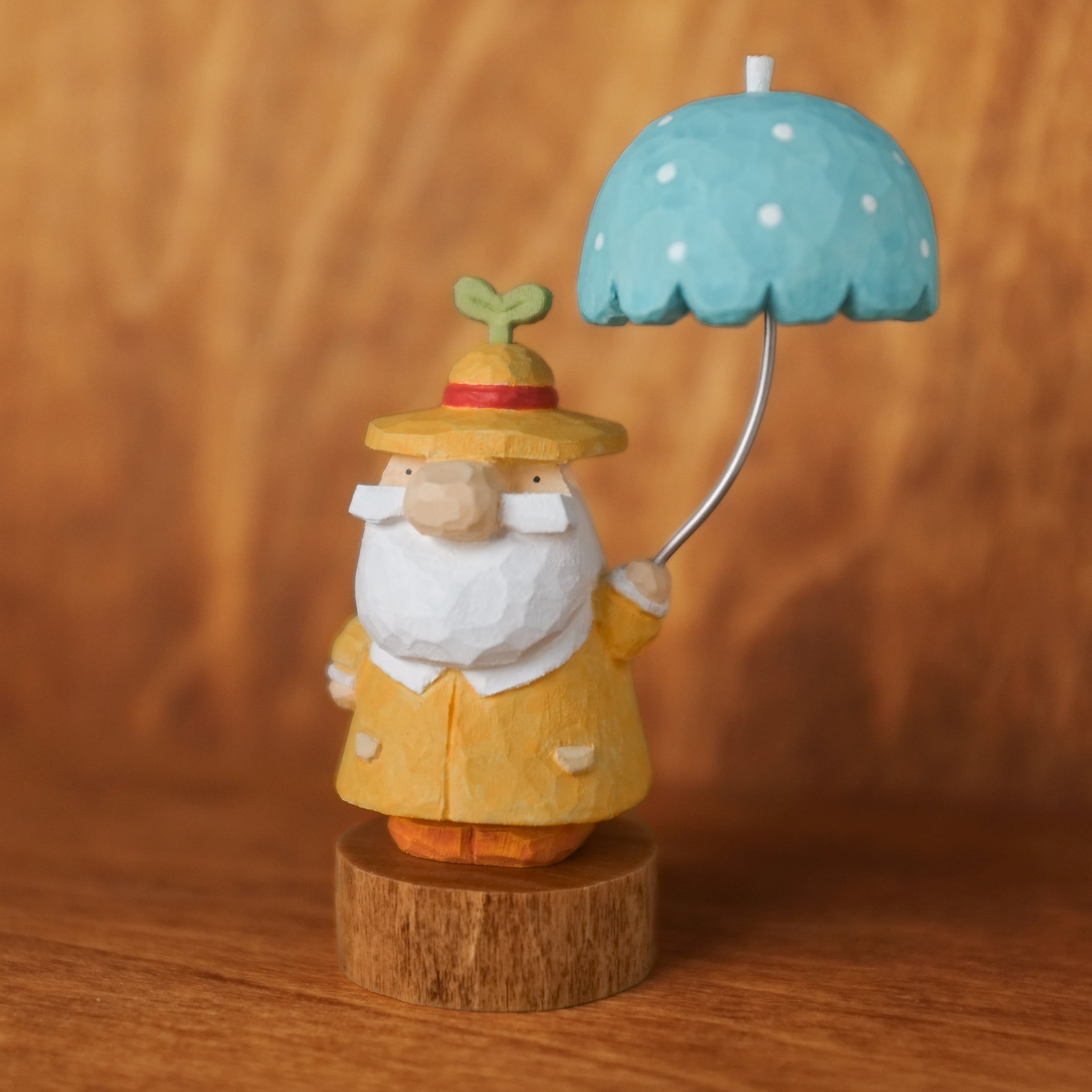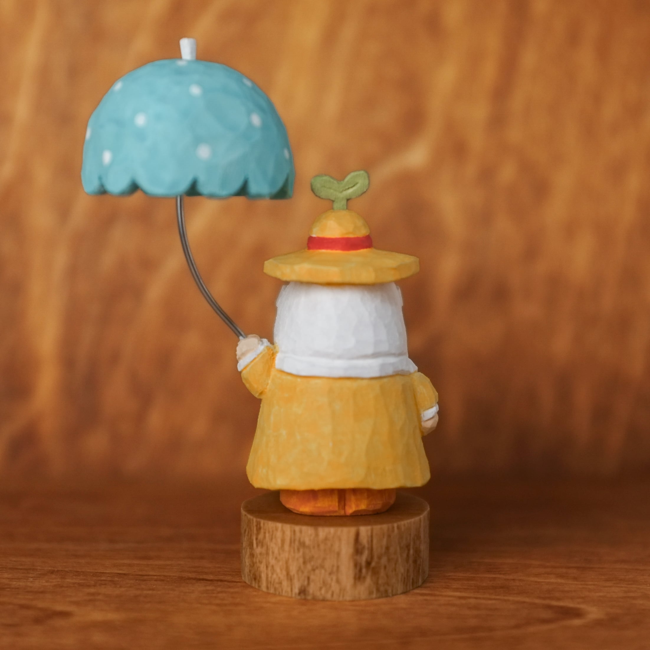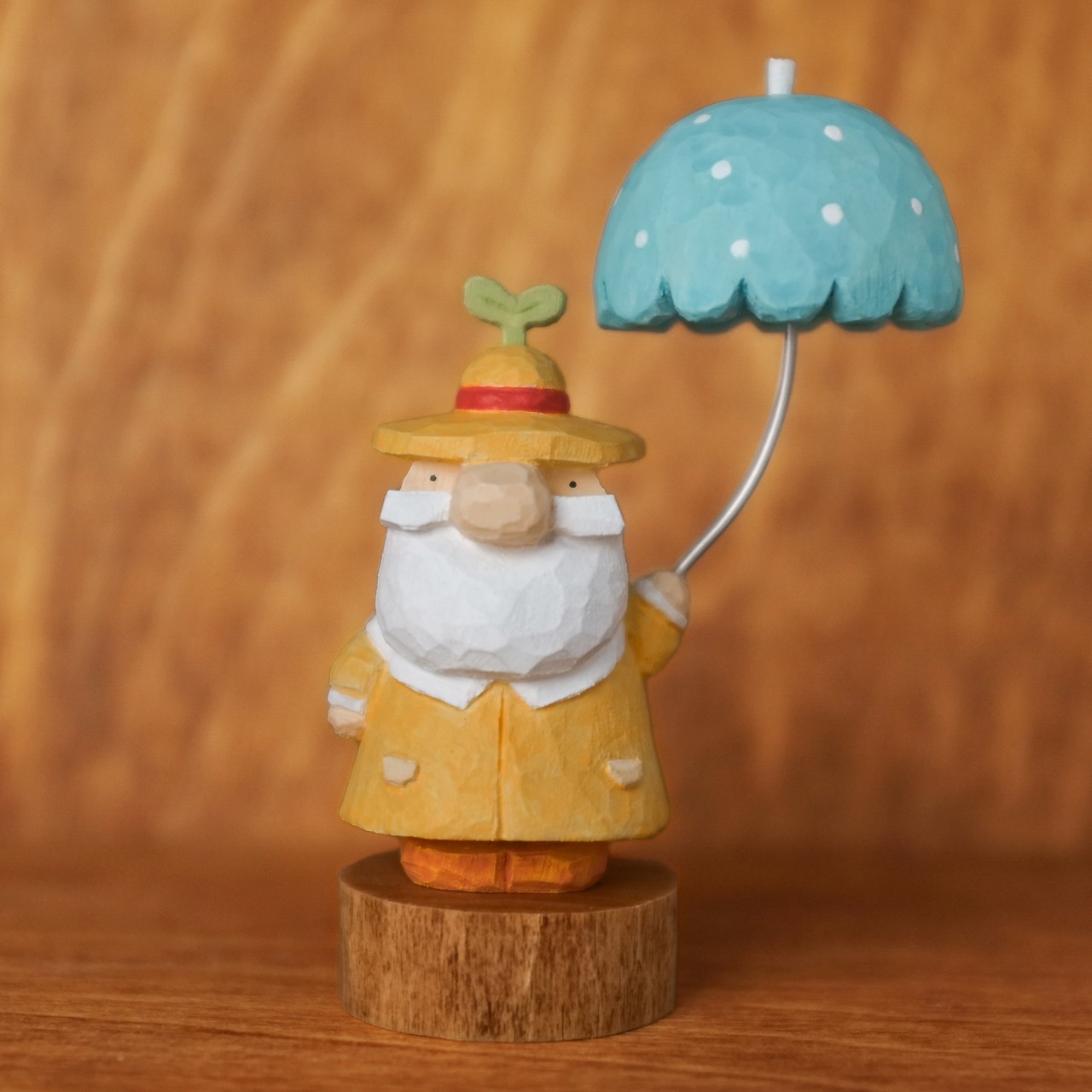 北欧風の木彫り、【トントゥ ~ラムネ傘と雨上がりの芽吹き~】です♪