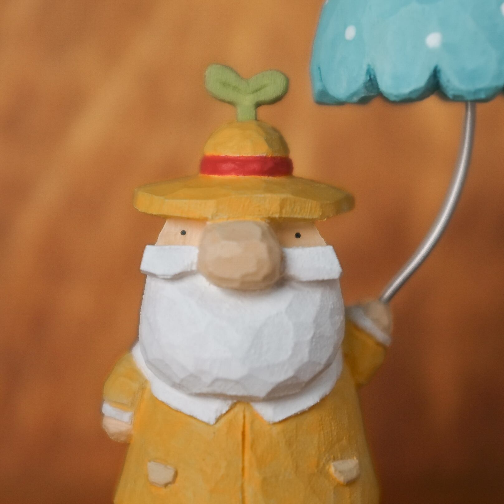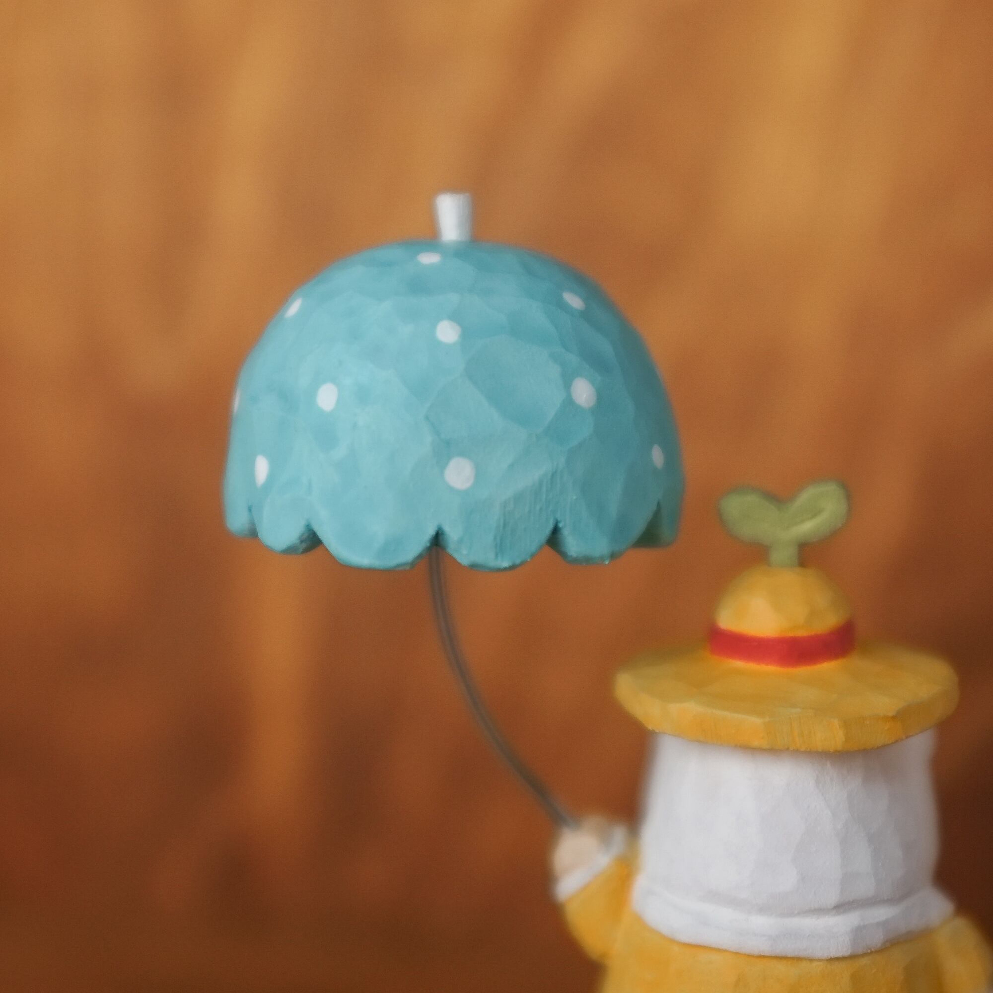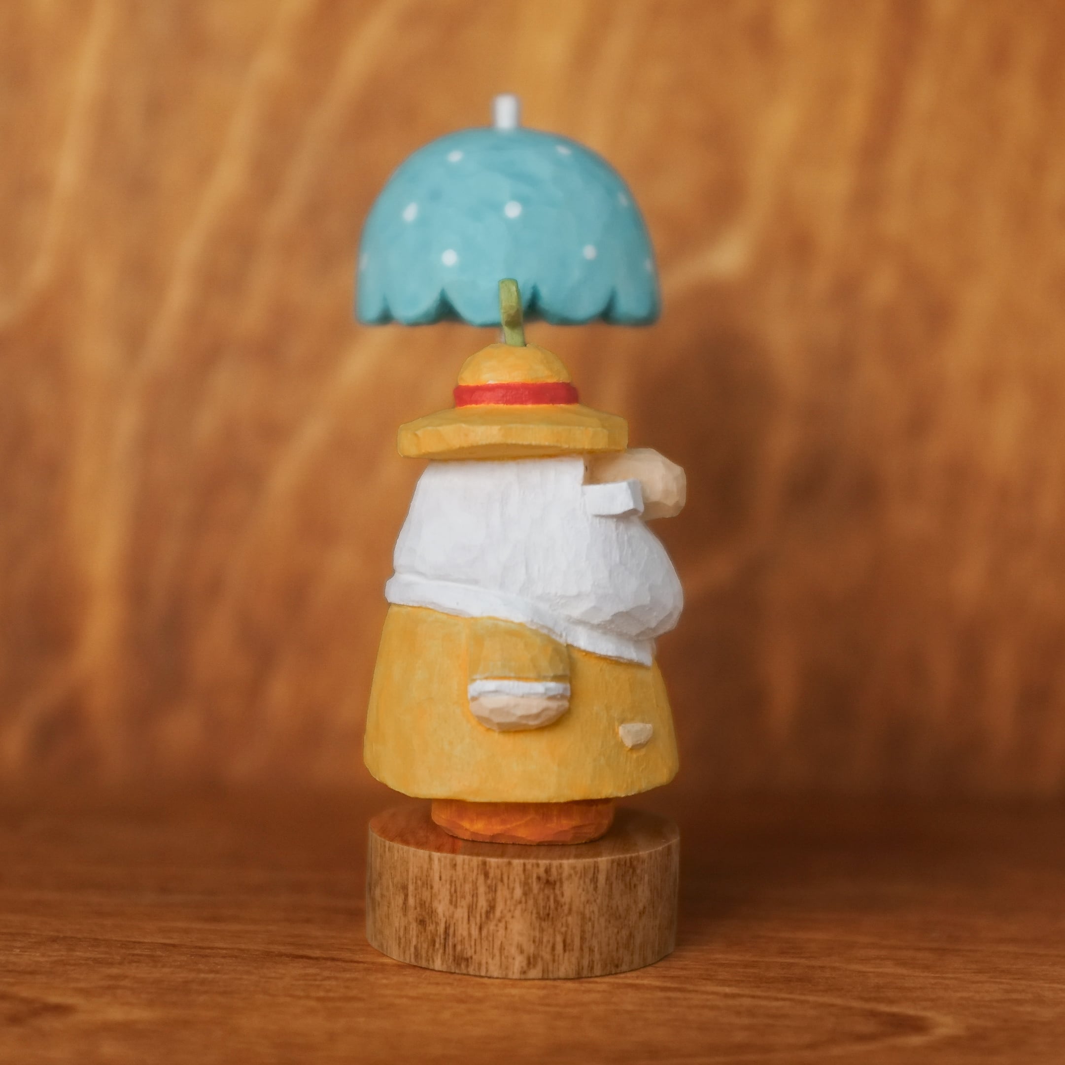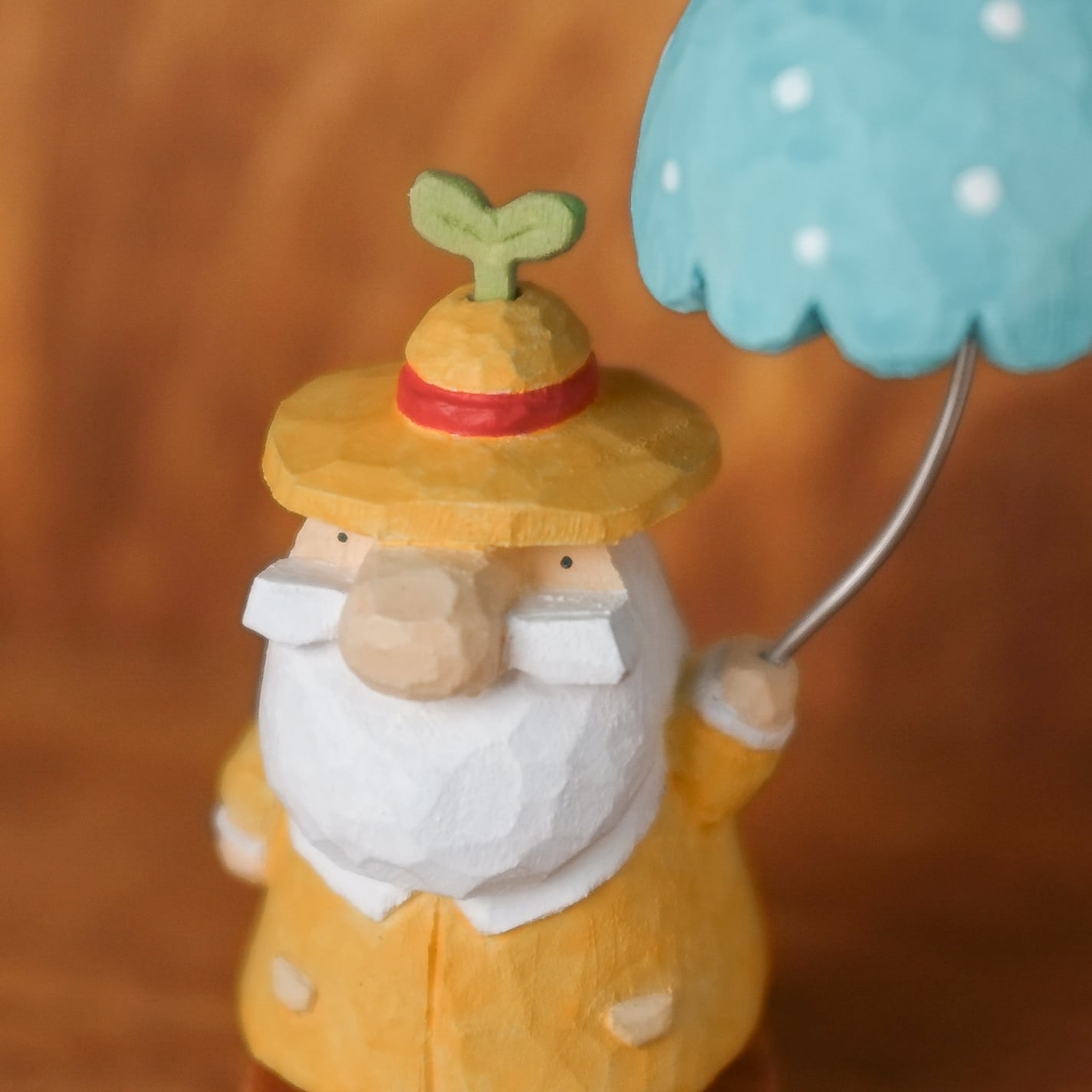 北欧風の木彫り、【トントゥ ~ラムネ傘と雨上がりの芽吹き~】です♪