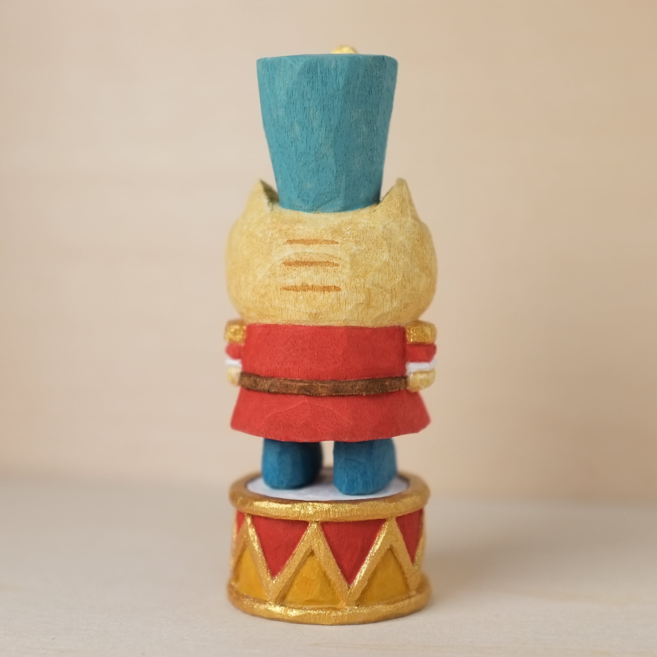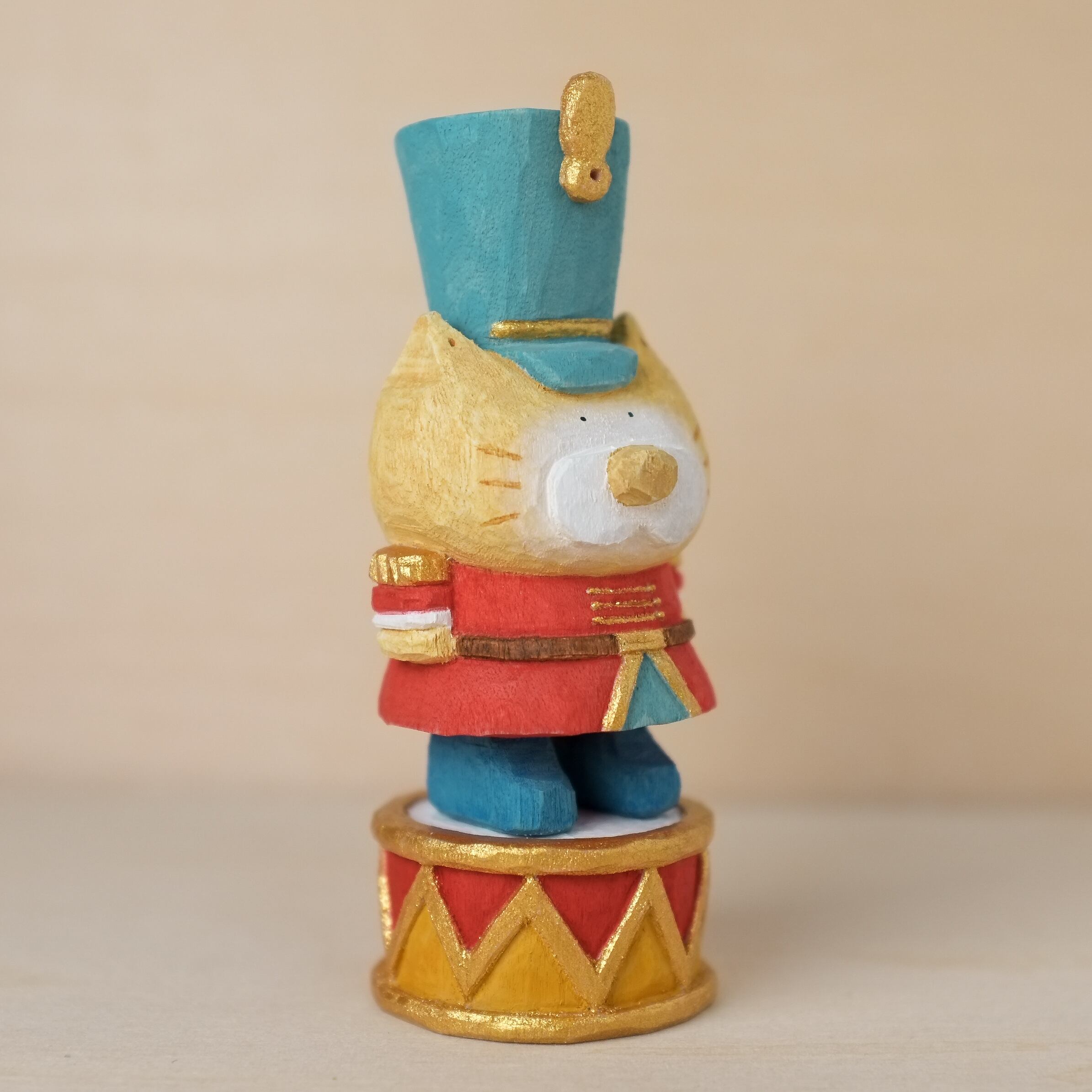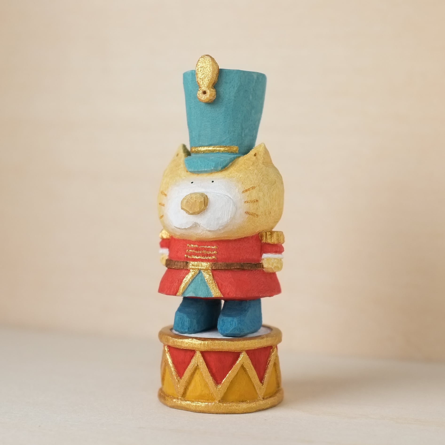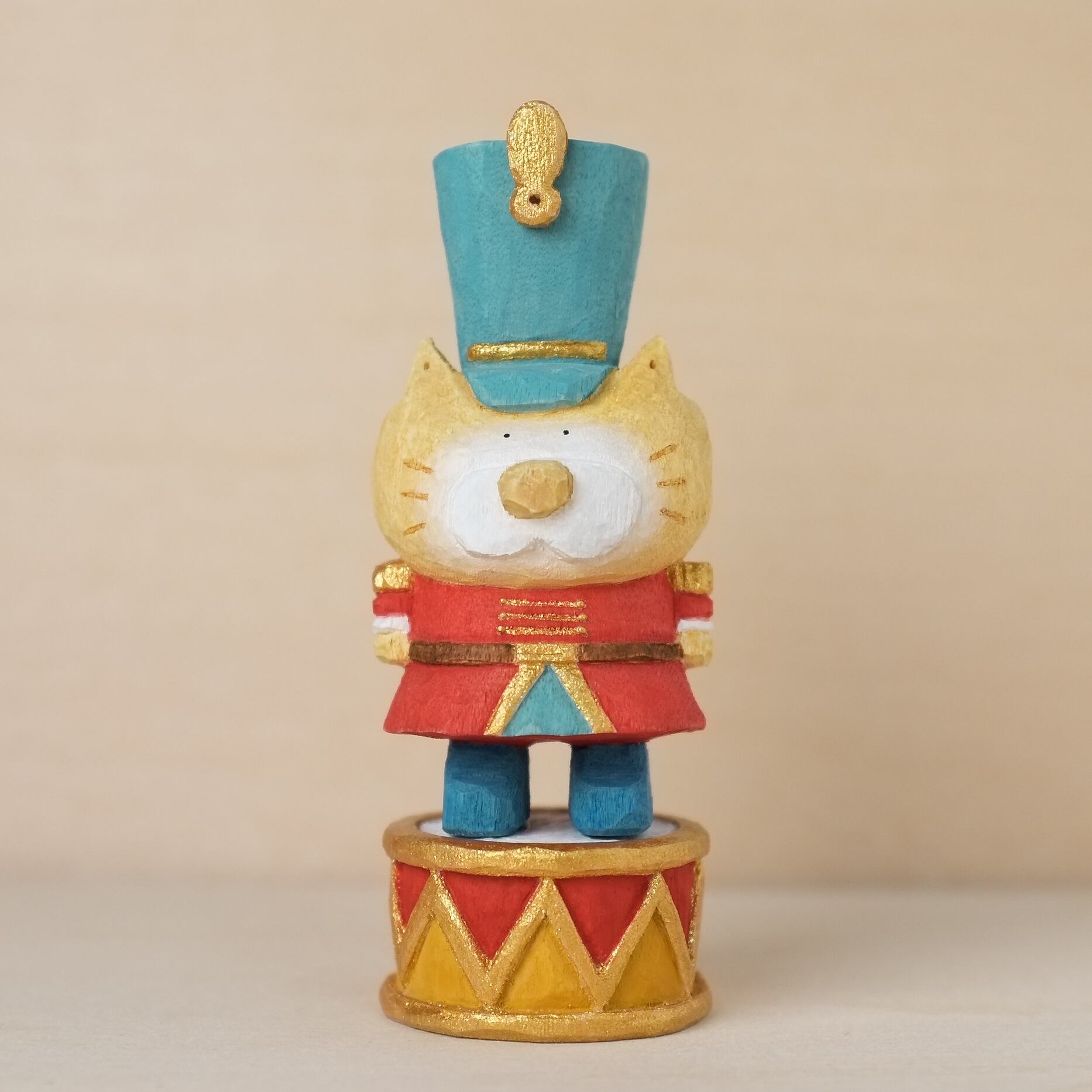 ・猫と、ドラム・帽子の羽根は接着剤で固定されています。強い衝撃を与えると、取れてしまう可能性があるので、ご注意下さいませ。